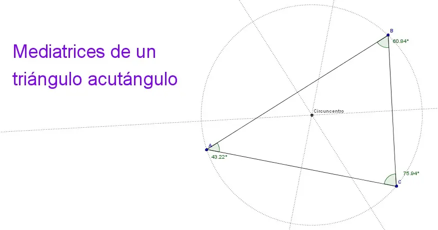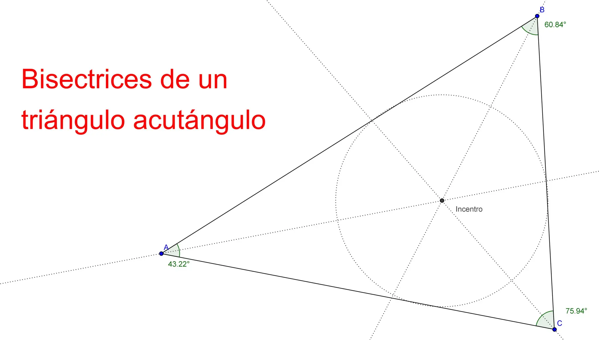 Las bisectrices (rectas que bisecan a cada ángulo)