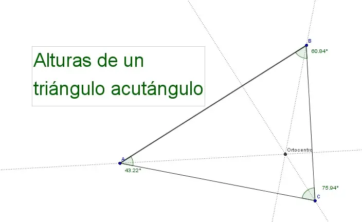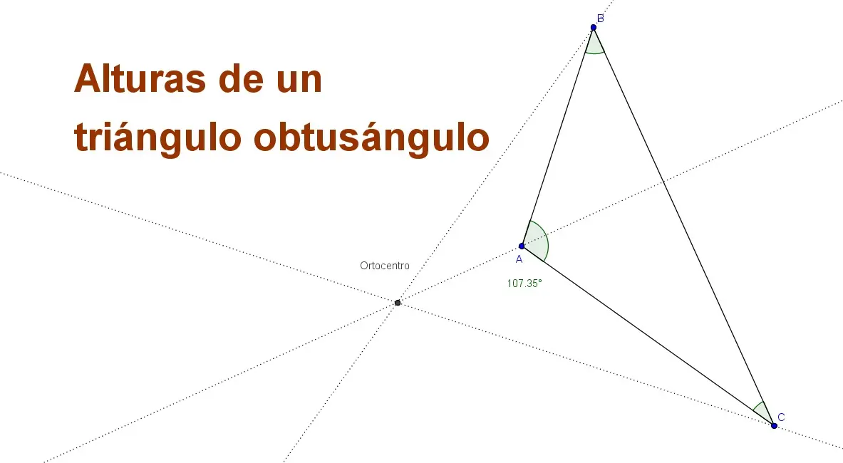 Las alturas (rectas perpendiculares a cada lado que pasan por el vértice opuesto)
