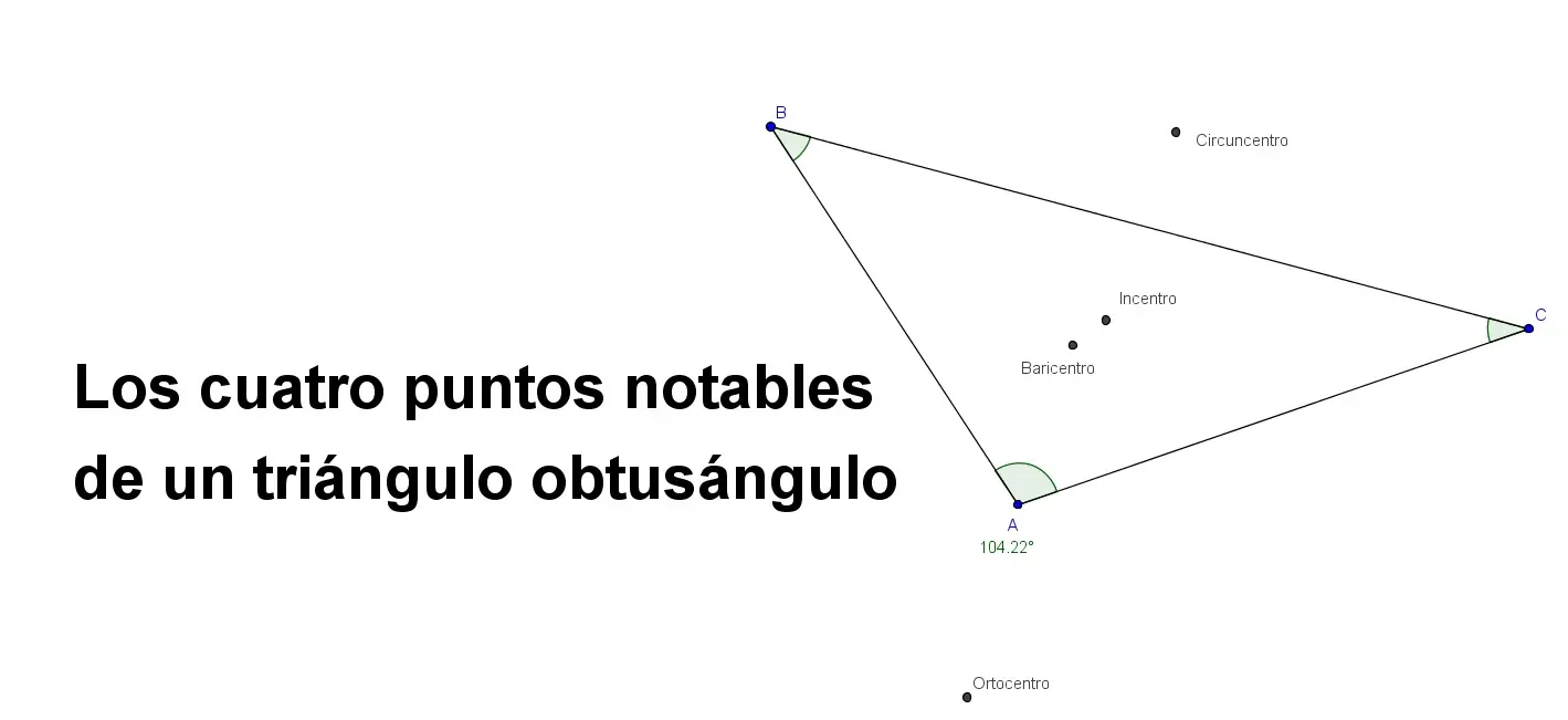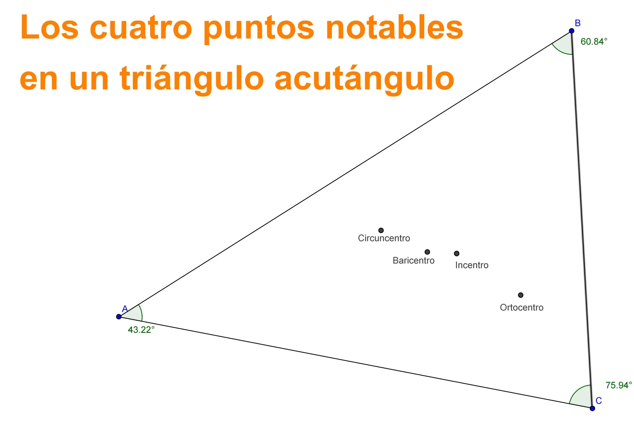 Hoy les quiero presentar algunos gráficos que he realizado yo mismo para ilustrar mis clases de secundaria básica. Son los puntos notables de los triángulos: circuncentro, baricentro, ortocentro e incentro.