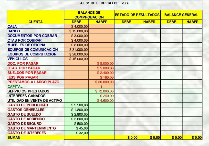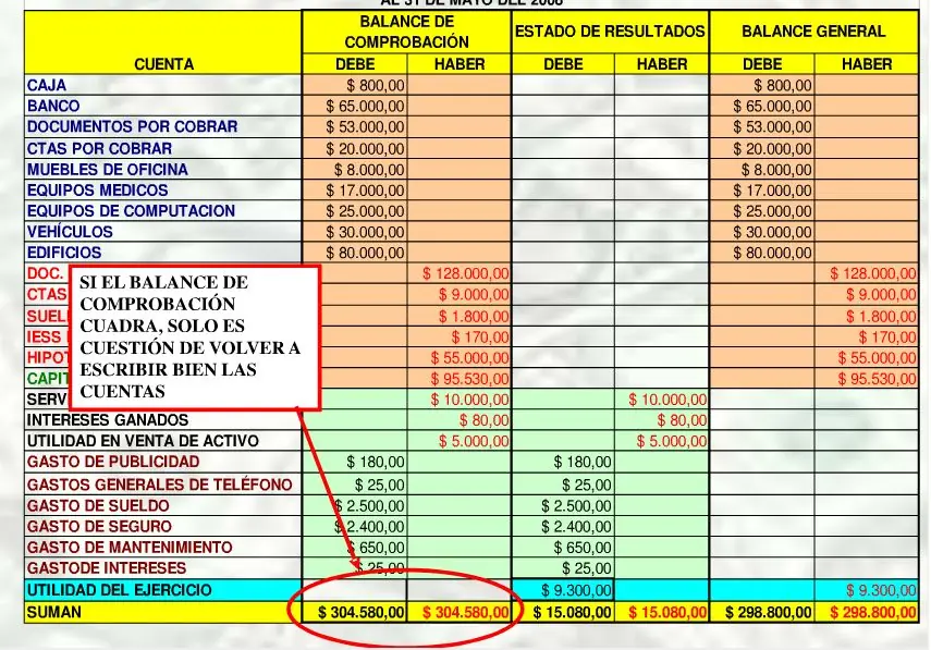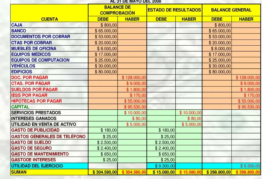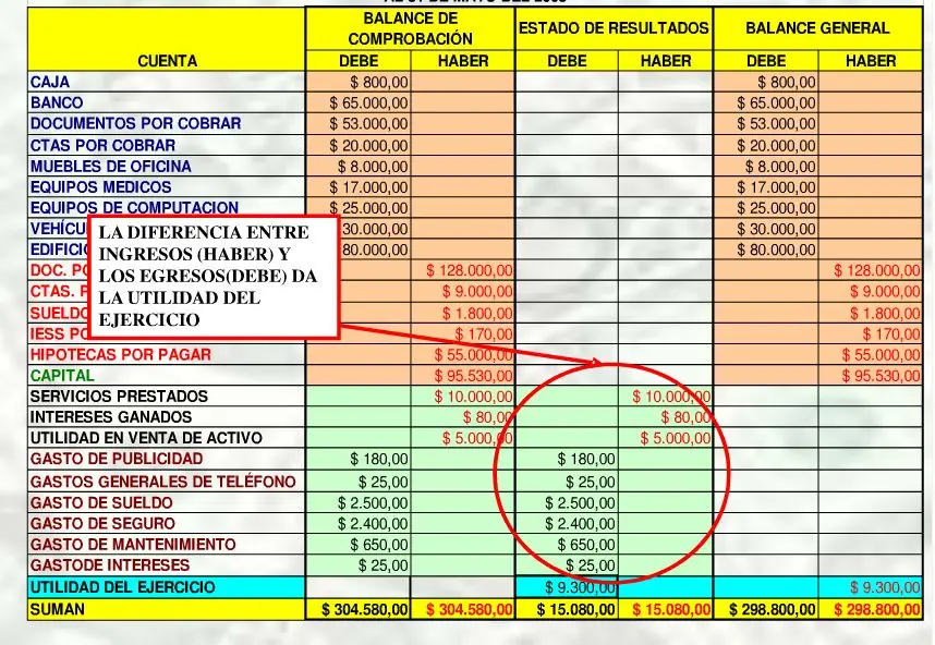 hoja de trabajo contable