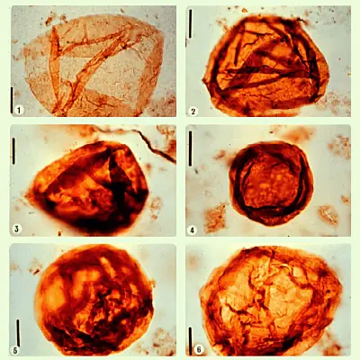 -Microfósiles de Bitter Springs Chert (Australia). Son los más antiguos que se conocen; de hace unos 3.600 ma. Pertenecen seguramente a CIANOBACTERIAS.