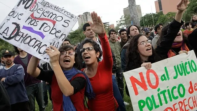 La destitución de Fernando Lugo viene a poner de manifiesto que, desaparecido el factor militar, lo que se busca son esquemas de mucha fragmentación de modo que no exista una fuerza dominante y quede así a mano el dispositivo destituyente que en la tarde de hoy se activó en el Paraguay. Se buscan gobiernos débiles, que estén condicionados o directamente puedan eyectados desde los parlamentos.