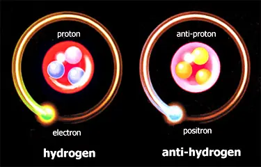 Aqui se ve un un Atomo de Hidrogeno sus cargas y un atomo de hidrogeno opuesto ya que al tener las cargas opuestas se llama Anti Hidrogeno.