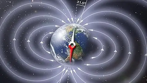 Aqui se muestra el campo magnetico de la tierra