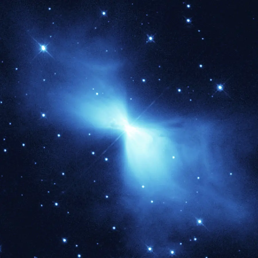 Esta foto de la Nebulosa Boomerang, situada en la Constelación de Centauro, está tomada a 5.000 años luz de distancia. En esa nebulosa planetaria se forman planetas alrededor de la estrella central; se considera el objeto estelar más frío encontrado en el universo hasta ahora