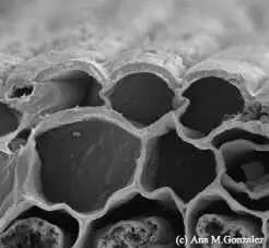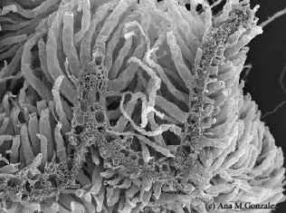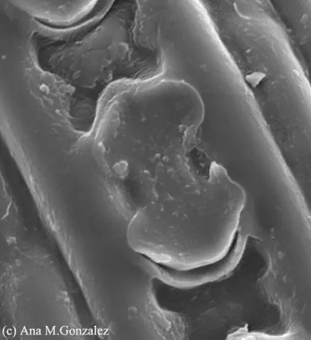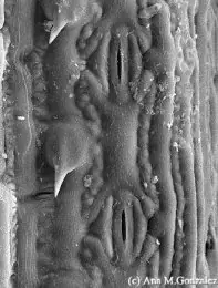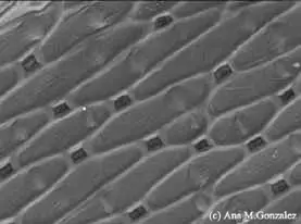 Epidermis de Caña de azúcar con micrótricos en aguijón.
