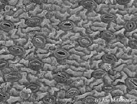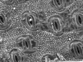 Estomas de la epidermis de Arroz cubiertos con cera.