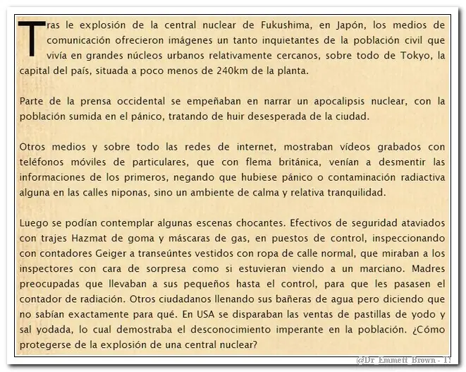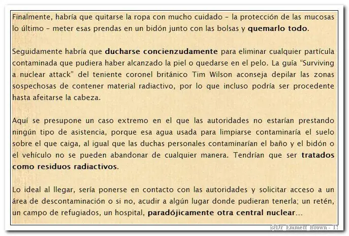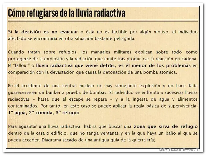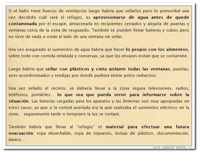 ¿Que harías si estuvieras en el área afectada y ya no hubiera tiempo de escapar? ¿Que comerías? ¿Qué beberías? ¿como te descontaminarías de la radiación?