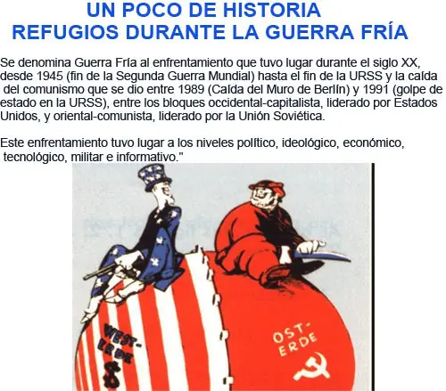 Era tal el temor que había en la población que en en todos los diarios y revistas sacaban planos y manuales para construir refugios ante una posible guerra nuclear. Obviamente no iban a resistir un impacto directo pero servirían como refugio ante la lluvia radiactiva y sería un lugar donde guardar agua y comida.
