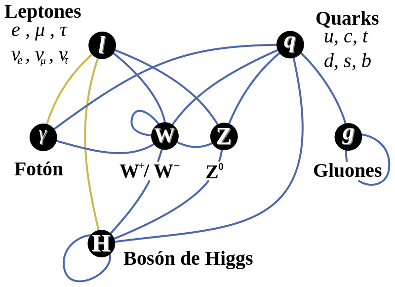 Como ya dije, este campo de Higgs, compuesto cuánticamente por bosones de Higgs, interactúa con algunas partículas elementales y no con otras; esta partícula, como los demás bosones de gauge, es la mediadora de una interacción, la interacción de Higgs.