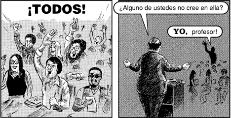 En esta podemos ver lo que los religiosos ven de nosotros cuando hablamos (que los "abrumamos" con lo que para nosotros es evidencia). Ademas de Gritarle ¡HECHOS! (Actitud 1)