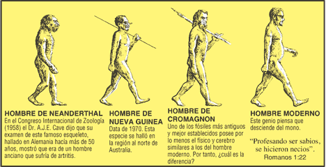 Vean las imágenes, díganme cuantos conocen (¿solo el Neanderthal no?) eso puede decir que son fósiles que (como la mayoría del cuadro) son falsos y ahora no se toman en cuenta.