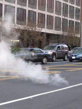 Bien, en primer lugar no se trata de humo sino de vapor de agua. Y procede de fugas del sistema de vapor de la ciudad.