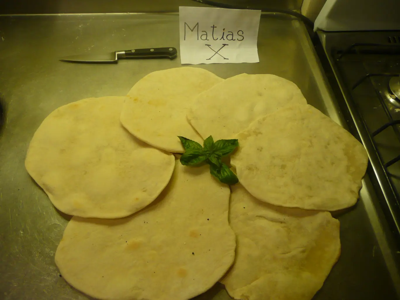 La característica particular de este pan es que no lleva levadura, por eso se lo deja reposar tanto. Estos panes sin levadura son llamados Pan Ácimo.