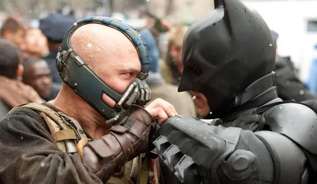 Bane en The Dark Knight Rises, así como el Joker antes que él, cree que el contrato social es una farsa. Bane elimina a las personas e instituciones que hacen cumplir el contrato social, y Gotham inmediatamente desciende a la altura de un motín en la cárcel en toda la ciudad. Esta se supone es una ciudad que está poblada principalmente por personas que fueron a la escuela y por personas que tienen puestos de trabajo por lo cual tienen acceso al raciocinio durante toda su vida, pero sin nada que represente o haga cumplir el contrato social, es hora de volver a la vida salvaje.