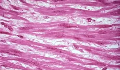 _ Músculo Cardíaco: Se forma en las paredes del corazón y se encuentra en las paredes de los vasos sanguíneos principales del cuerpo. Deriva de una masa estrictamente definida del mesenquima esplácnico, el manto mioepicardico, cuyas células surgen del epicardio y del miocardio. Las células de este tejido poseen núcleos únicos y centrales aunque algunas células pueden contener hasta dos núcleos, también forman uniones terminales altamente especializadas denominadas discos intercalados que facilitan la conducción del impulso nervioso.