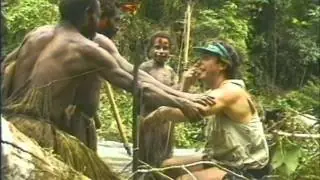 En su estado más puro y viviendo de manera tan primitiva como en la prehistoria,ellos no conocen la rueda ni nada que no sea el medio que los rodea. Viven de la caza en las selvas de Papúa ,Nueva Guinea. Por primera vez en sus vidas probaron el arroz,que sólo les gustó con sal. Los golpes en su cabeza significa que les agrada la comida.