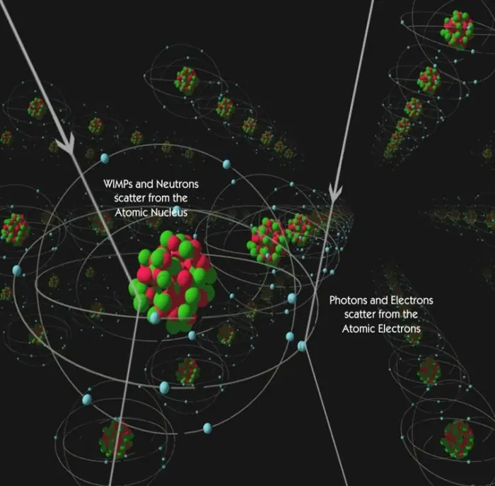Una de las particulas que los científicos están buscando, pero que es difícil, porque son invisibles, son las denominadas WIMP, que son partículas que sólo van a interactuar entre ellas, cuando exista una fuerza nuclear débil, pero no cuando hay electromagnetismo, porque no les afecta. (si les afectaría la gravedad, pero débilmente).