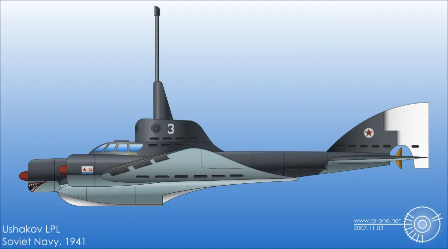 En 1934 el cadete Dzerzhinskiy Of b.P. Ushakov presentó el diseño esquemático de los submarinos de vuelo ( LPL ), que estuvo representado en varias versiones para determinar la estabilidad y la carga sobre los elementos de construcción de los aparatos.