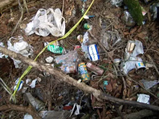 Pese a las indicaciones, parece ser que la gente no es muy cuidadosa por aquí. A medida que nos vamos adentrando en el bosque nos vamos encontrando montones de desperdicios en los bordes del camino o entre los matorrales; zapatillas y todo tipo de prendas se encuentran tirados por doquier, papeles, objetos personales y, sobre todo, muchos envoltorios de medicamentos… esto es un poco raro…