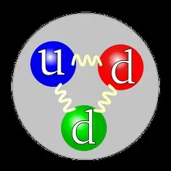 Quark bottom (fondo). Carga eléctrica -1/3. Sabor belleza.A pesar de que las cargas eléctricas de mismo signo se repelen dentro del protón conviven dos quark up de carga +2/3. Podría parecer que este hecho antes o después fuera a provocar la destrucción del protón, pero no es el caso pues se estima que su vida media es del orden de 1030 años. Si este valor no os dice nada, quizá sabiendo que el universo tiene aún poco más de 1010 años ponéis el número en perspectiva. ¿Cómo es posible, por tanto, que se puedan juntar sin problemas estos dos quarks dentro de un protón? La respuesta está en un tipo de interacción nuclear conocida como interacción nuclear fuerte.