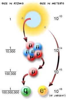 Vamos a hacer un repaso al átomo comenzando desde el interior y yendo hacia el exterior, aprovechando también para comentar algunas curiosidades sobre las interacciones existentes en cada escala. Nuestra primera parada son, por tanto, los quarks.