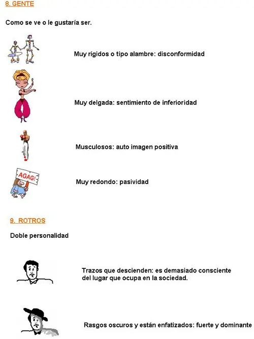 PSICOSOMÁTICOS: brazos cortos, piernas juntas, omisión de nariz, cuerpo hinchado; generalmente aparecen nubes.