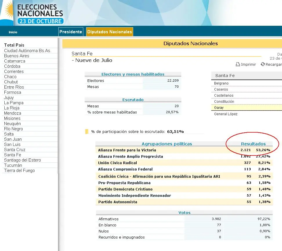 Ahora, en las últimas elecciones generales la misma postal comienza a percibirse, a través del análisis de los documentos que aparecen en el sitio www.elecciones2011.gov.ar. Hay que mencionar que no ha sido un “descubrimiento” de este sitio, sino la revelación de una fuente de información vinculada a la justicia electoral. "Investiguen los telegramas, especialmente de las provincias que dan mucha ventaja al Frente para la Victoria (...) Al menos 10% de los votos que obtuvo Cristina fueron manipulados", aseguró el informante ayer lunes a primera hora.