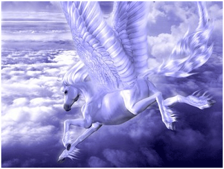 Pegaso es un caballo alado. Su nombre proviene de la palabra griega phgh, que significaba manantial, pues se decía que había nacido en las fuentes del Océano.