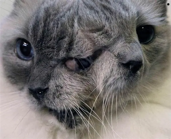 Un felino que nació con dos rostros dentro de la misma cabeza causó sensación esta semana al cumplir 12 años y romper un récord de longevidad para los animales de su condición.