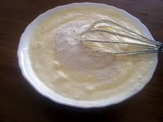 Tamizamos la harina con la levadura (es decir la pasamos por un colador) y se la agregamos poco a poco a la mezcla anterior con movimientos envolventes.