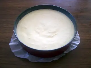 Untamos el molde con mantequilla, y cubrimos el fondo con papel vegetal, vertemos la mezcla dentro. Lo introducimos en el horno unos 45-50min aprox, dependiendo de cada horno.
