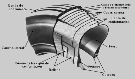 Los neumáticos generalmente tienen hilos que los refuerzan. Dependiendo de la orientación de estos hilos, se clasifican en diagonales o radiales. Los de tipo radial son el estándar para casi todos los automóviles modernos.