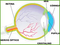 Nuestra capacidad de ver es el resultado de un proceso similar al de una cámara. En una cámara, la luz pasa a través de una serie de lentes que enfocan las imágenes sobre una película o un chip de imagen. El ojo desempeña una función similar, al pasar la luz a través de la córnea (parte del ojo transparente que lo protege), del iris (zona coloreada del ojo), de la pupila (abertura dilatable y contráctil de color negro con la función de regular la iluminación que le llega a la retina) y del cristalino (lente biconvexa que permite enfocar objetos situados a diferentes distancias), que en conjunto enfocan las imágenes en la retina, tejido sensible a la luz situado en la superficie interior del ojo, constituido por líneas de células fotosensibles.