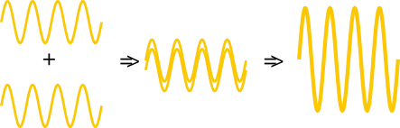 Hay dos cosas importantes para decir ahora. En primer lugar: ¡Mirá los círculos! Ahora el objeto avanza a mayor velocidad que las ondas, y eso significa una sola cosa: Las ondas "se tocan" e interfieren unas con otras. ¿Y qué significa esa interferencia? Una imagen vale más que mil palabras: