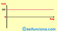 Gráfico de una corriente directa (C.D.) o continua (C.C.)..........Gráfico de la sinusoide que posee una corriente alterna (C.A.).