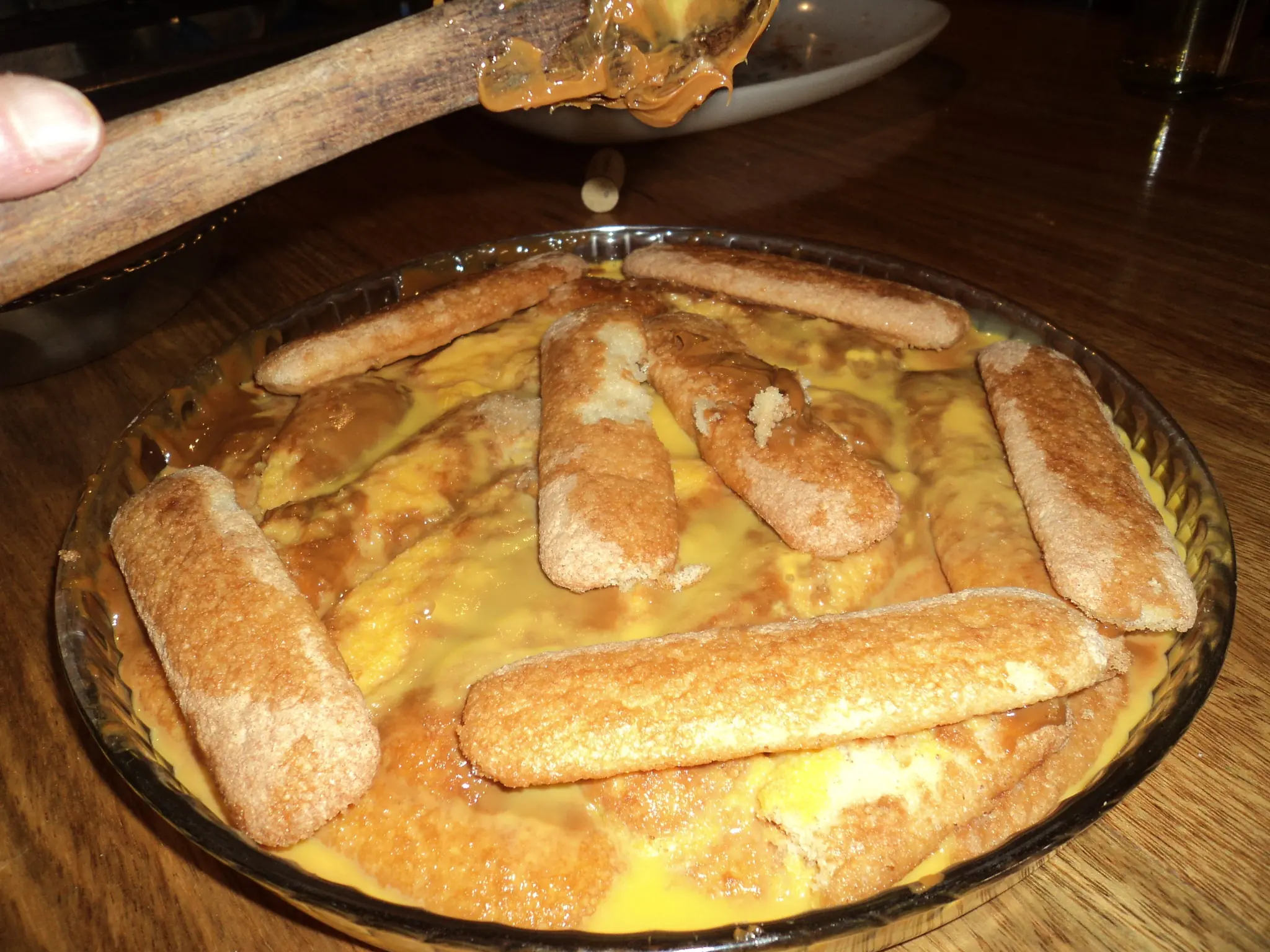 Le agregamos el flan de vainilla y hacemos otra capa de vainillas y le ponemos el dulce de leche