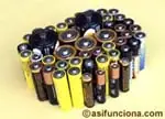 Fuentes suministradoras de corriente directa o continua. A la izquierda, una batería de las comúnmente utilizada en los coches y todo tipo de vehículo motorizado. A la derecha, pilas de amplio uso, lo mismo en linternas que en aparatos y dispositivos eléctricos y electrónicos.