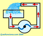 El movimiento de las cargas eléctricas se asemeja al de las moléculas de un líquido, cuando al ser impulsadas por una bomba circulan a través de la tubería de un circuito hidráulico cerrado.