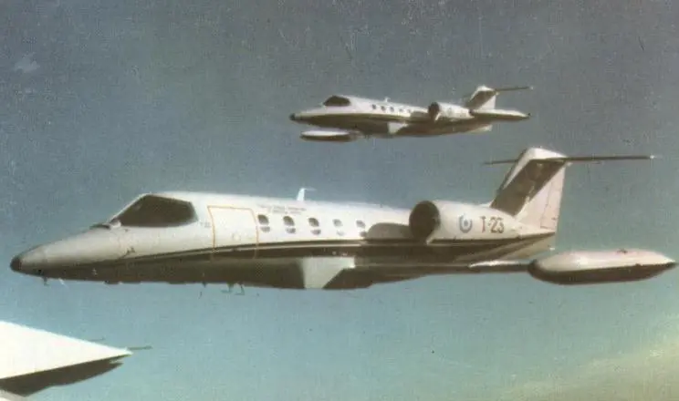 El T-23 volando en formación con otro Learjet del G1A, el de atrás es el T-21.