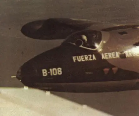 El B-108 rumbo a una misión de bombardeo sobre el Monte Kent. El avión se perdería al ser derribado por un Sea Dart de la RN cobrándose la vida del capitán Fernando Casado.