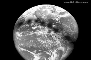 El satélite meteorológico japonés MTSAT ha captado la sombra de la Luna mientras cruzaba el océano Pacífico, obteniendo esta bella estampa: