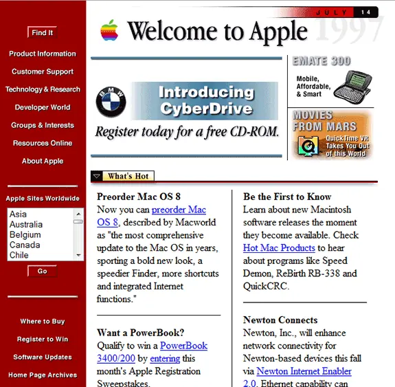Comparada con la actual, la tecnología web de 1997 era muy básica.