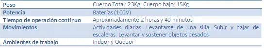 • Levanta hasta 100 Kg, sin obstaculizar el usuario (Aumento de Fuerza).