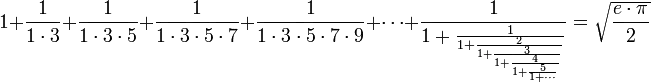 Ésta última se trata de una especie de obra de arte matemática donde se conecta una serie matemática infinita y una fracción continua para aportar así una relación entre dos célebres constantes de matemáticas.