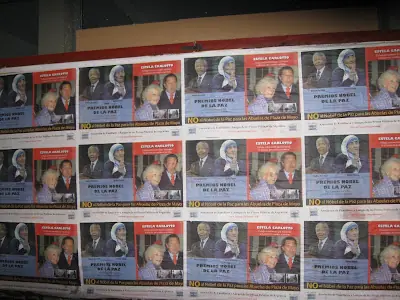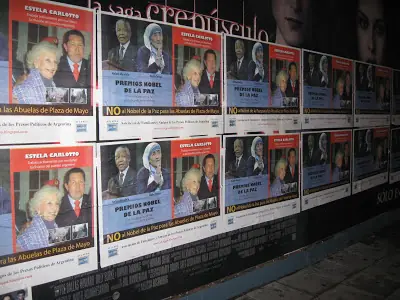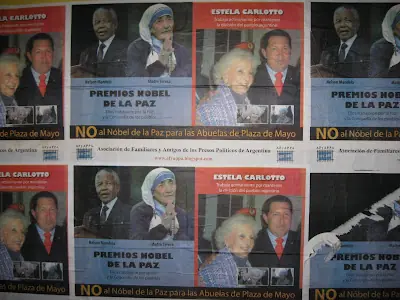 En el día de la fecha, la Asociación de Familiares y Amigos de los Presos Políticos de Argentina presentó en la vía pública una nueva campaña de afiches, destinada a poner de manifiesto nuestro público rechazo a que la señora Estela Carlotto reciba el Premio Nóbel de la Paz.