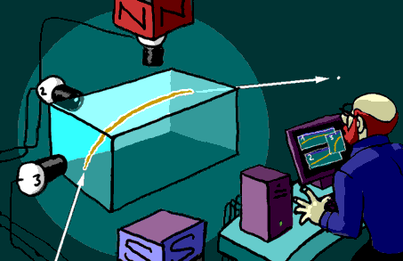 En los varios tipos de detectores electrónicos (como el Aleph del acelerador LEP en el CERN), las partículas van dejando a su paso señales eléctricas que posteriormente se tratan por ordenador para reconstruir las trayectorias (siempre se miden más cosas, pero esa es otra historia...)