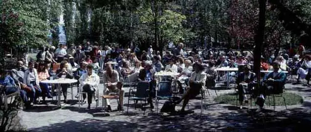 Terraza de la cafetería de CERN en verano.