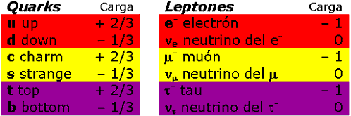 Estos son, según la Física actual, los ingredientes básicos de la materia; partículas elementales de dos tipos, quarks y leptones:
