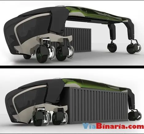 Transporte futurísta de contenedores con este camión conceptual. A diferencia de los camiones actuales, el contenedor no se sostiene por debajo como en los actuales camiones de mercado.